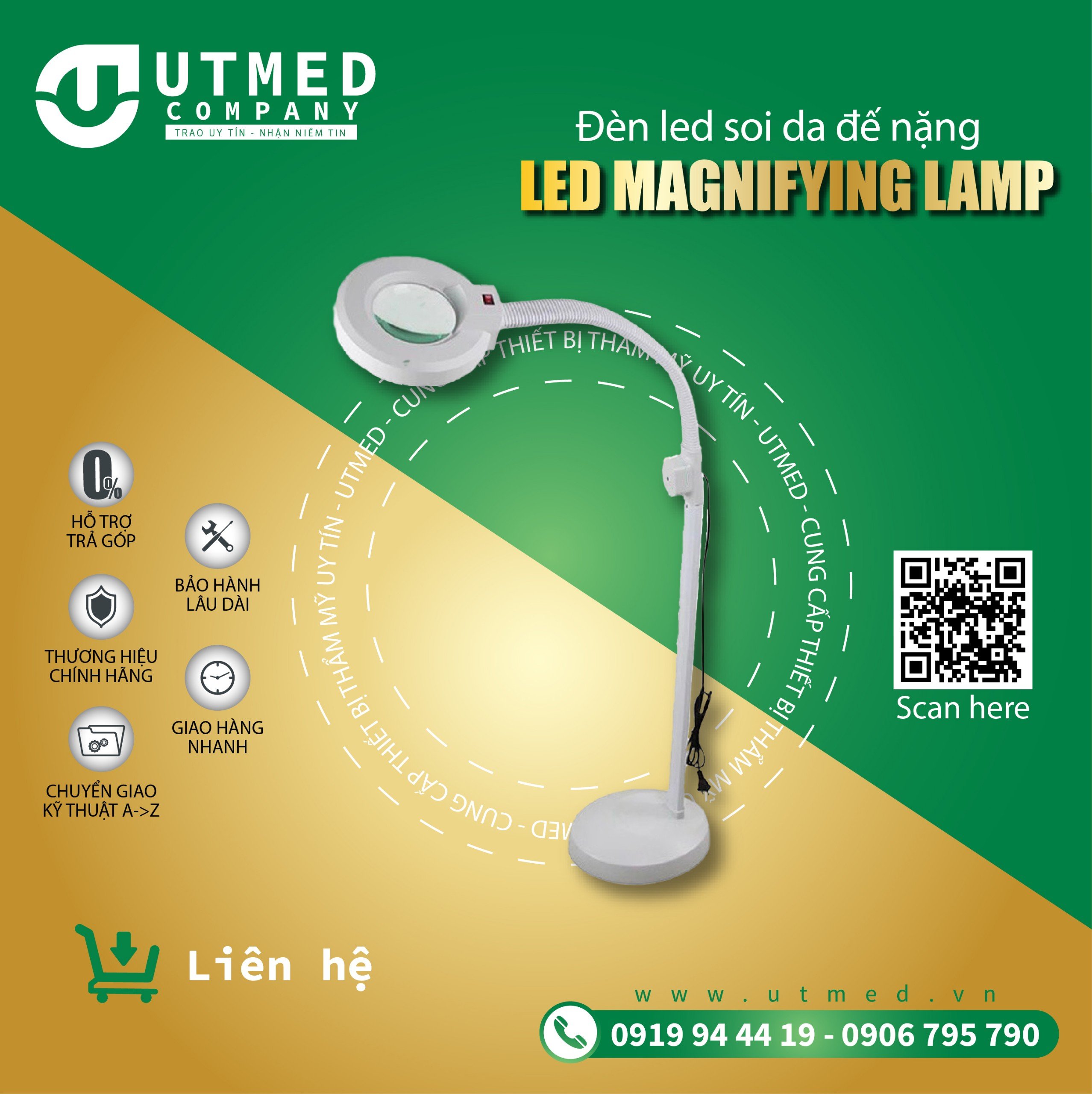 + Đèn lúp soi da ánh sáng LED chân nặng với thiết kế nhỏ gọn, dễ dịch chuyển và chuyển hướng thuận tiện.